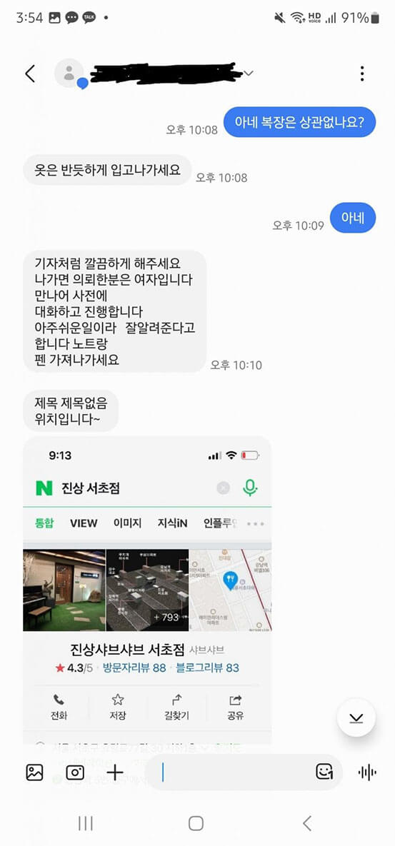 제보자는 원래 하객 대행 아르바이트나 전화 통화 대행 등의 아르바이트를 하기 위해 역할 대행 업체에 지원해 둔 상태였는데, 업체에서 연락이 와서 남현희와 전청조를 만나 아래와 같은 내용으로 기자인 것처럼 연기해 줄 것을 부탁했다고 합니다.