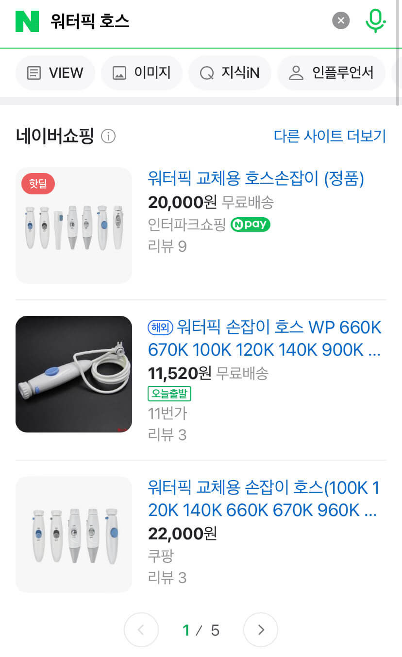 다양한 가격의 정품 워터픽 교체용 호스가 나오는군요.