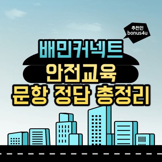 배민 커넥트 안전보건교육 퀴즈의 모든 문항과 정답을 총정리하여 드립니다. 이 안전보건교육은 우리동네 딜리버리, 해피크루, 카카오T픽커, 쿠팡이츠 배달 파트너의 안전보건교육 내용 및 문제와도 동일합니다.